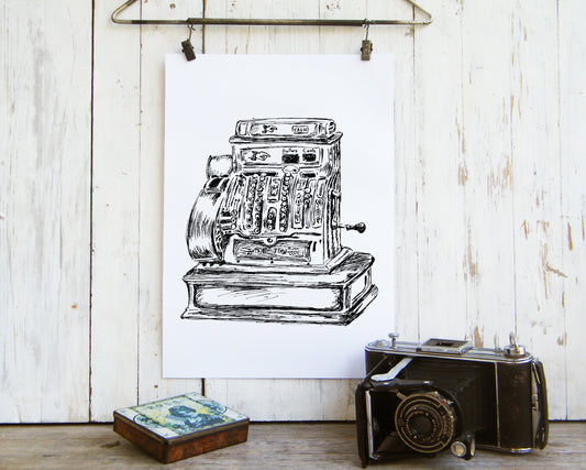 תמונה להדפסה ומיסגור קופה רושמת עתיקה