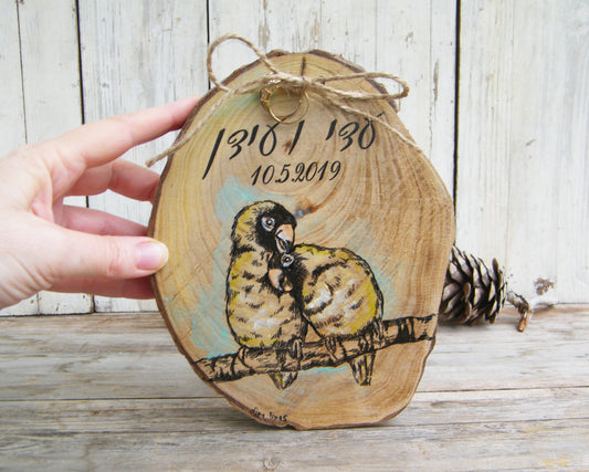 מנשא לטבעות נישואין עם פורטרט החתן והכלה
