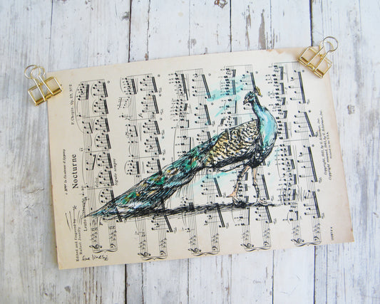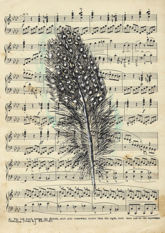 הדפס נוצת פניניה על נייר מספר תווים ישן