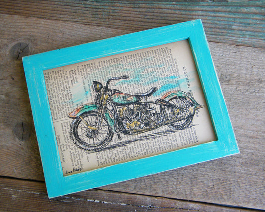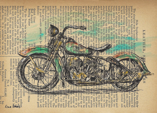 הדפס אופנוע הארלי רטרו על נייר מספר ישן