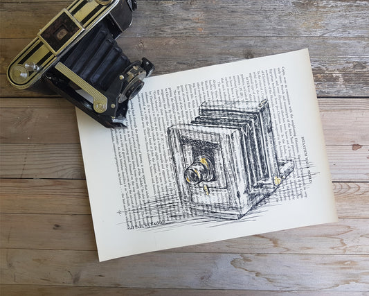 הדפס מצלמה עתיקה על נייר מספר ישן