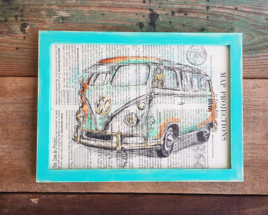 הדפס ממוסגר בסגנון וינטג' מיניבוס