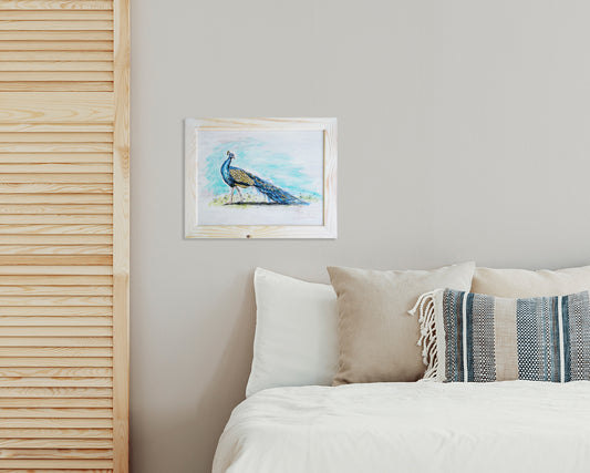 תמונה ממוסגרת מעץ טווס