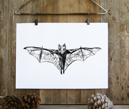 תמונה להדפסה ומיסגור עטלף שחור לבן