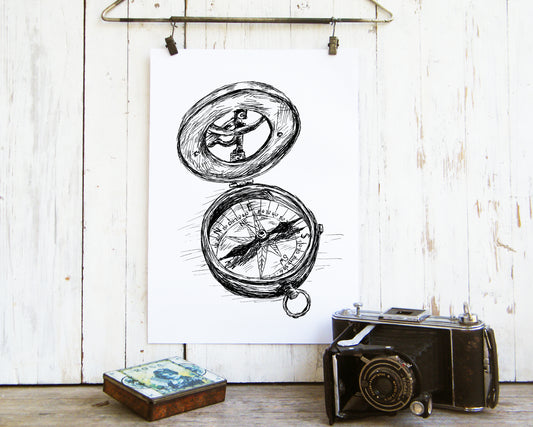 תמונה להדפסה ומיסגור מצפן בסגנון עתיק