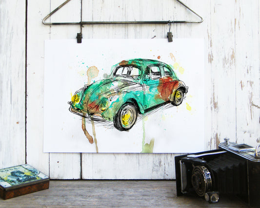 תמונה צבעונית להדפסה ומיסגור מכונית חיפושית עתיקה