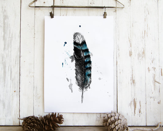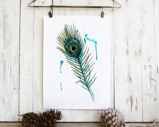 תמונה להדפסה נוצת טווס צבעונית בצבעי מים