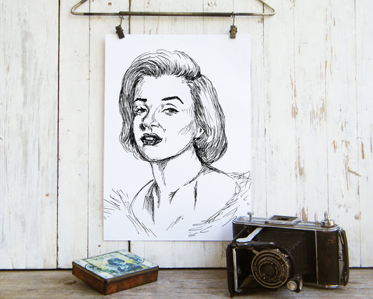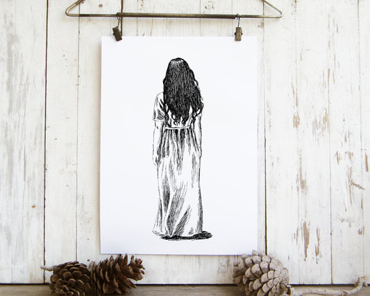 הדפס שחור לבן להדפסה ומיסגור אישה בשמלה לבנה