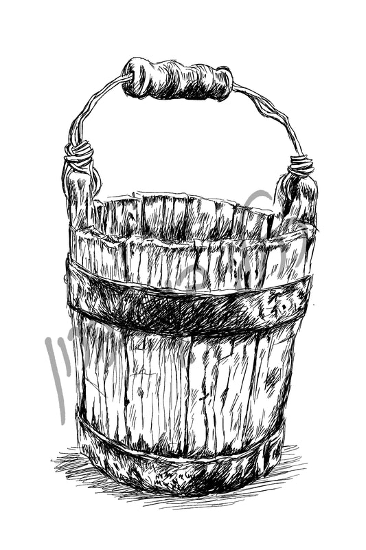 תמונה להדפסה ומיסגור דלי עץ עתיק