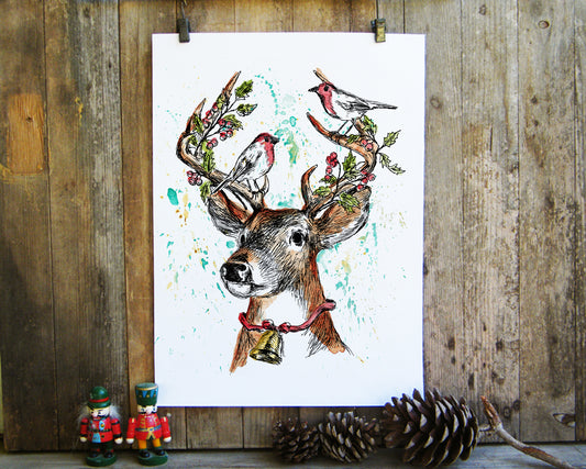 תמונה להדפסה ומסגור ראש אייל וציפורים