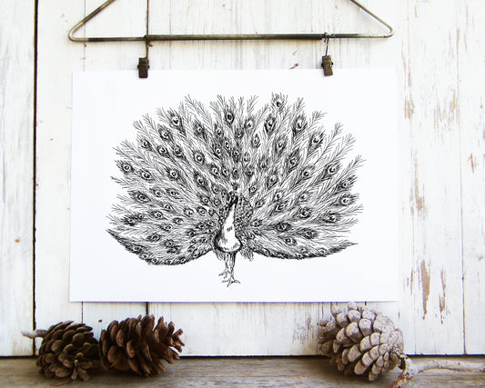 תמונה להדפסה ומיסגור טווס עם זנב פרוש