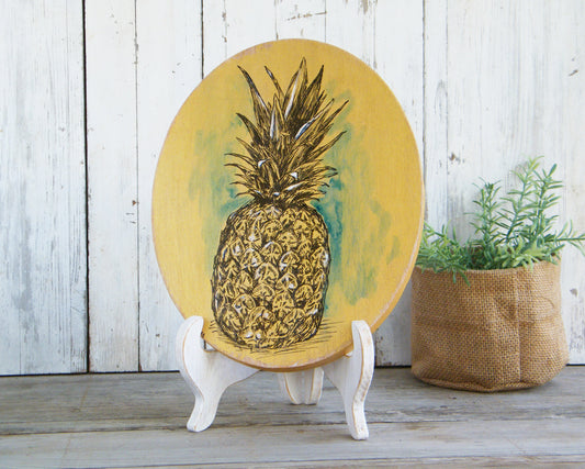 תמונה עגולה מעץ הדפס אננס